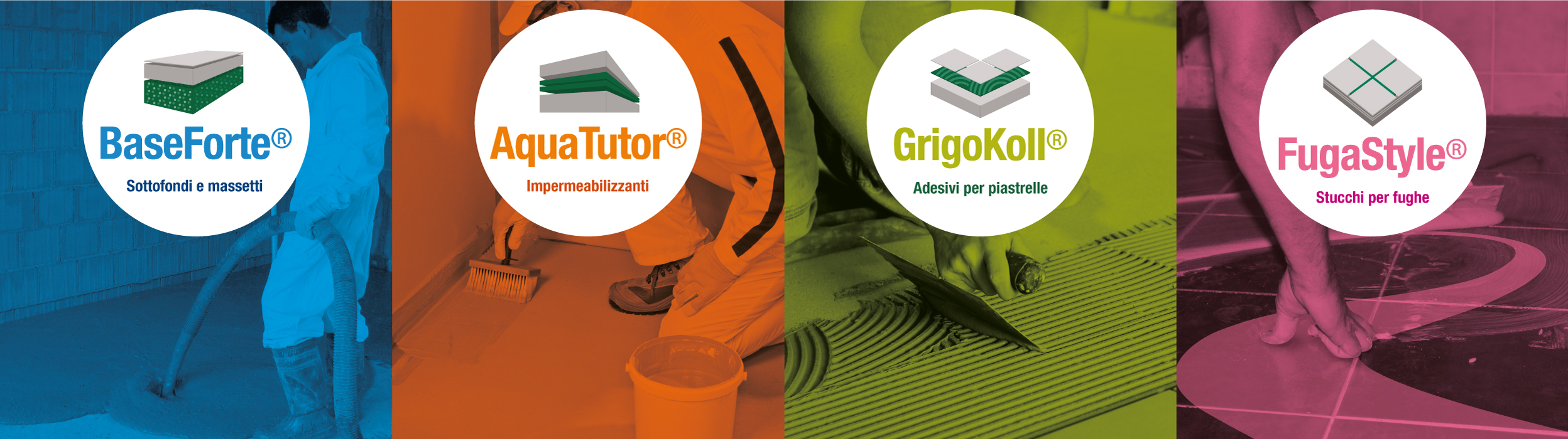 Soluzioni per sottofondi e posa di pavimenti e rivestimenti, distribuiti in 4 diverse linee di prodotto. Dai sottofondi alleggeriti e gli isolanti termo-acustici alla speciale composizione dei massetti per il sottofondo, dalle soluzioni per l’impermeabilizzazione alle caratteristiche formulazioni degli adesivi per piastrelle fino all’elevata resa estetica delle soluzioni per la stuccatura.