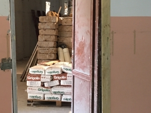 Adesivo a legante cementizio, bianco e grigio, per la posa, di piastrelle...